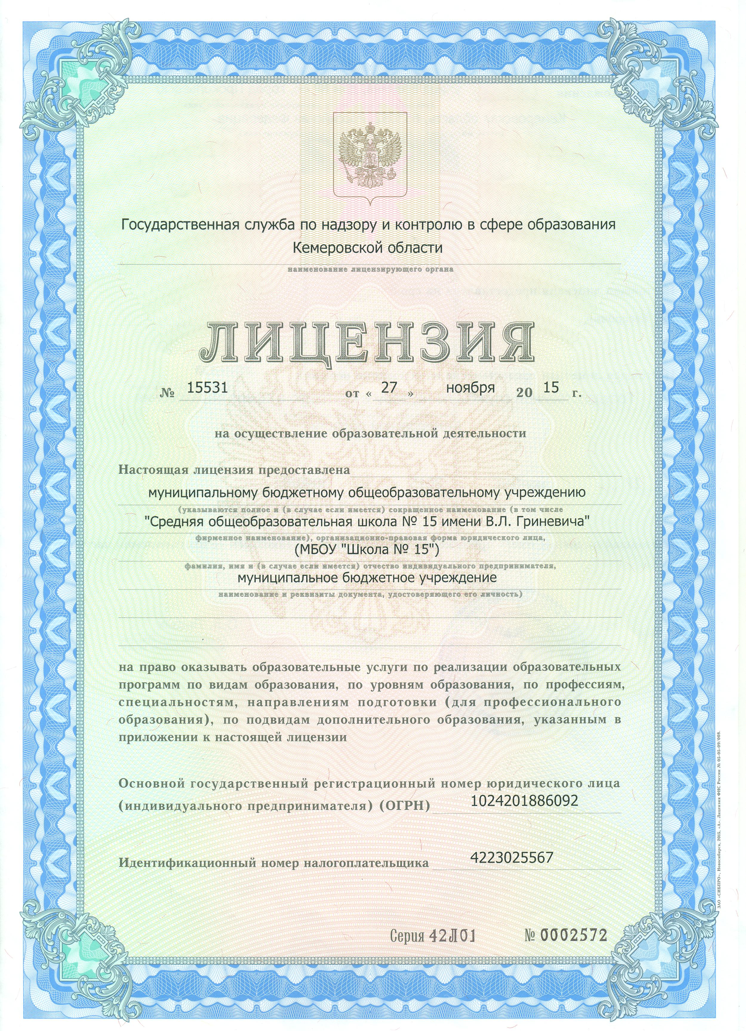 Лицензия на осуществление образовательной деятельности и свидетельство государственной аккредитации